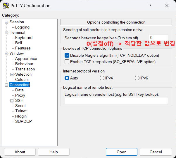 - putty를 통해 원격접속을 해둔 상태에서 일정 시간이 지나면 세션이 inactive 상태가 된다. (따로 설정을 하지 않는다면)