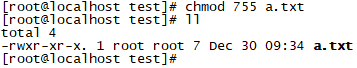 a.txt의 권한이 rwx / r-x / r-x로 변경된 것을 확인할 수 있다.
