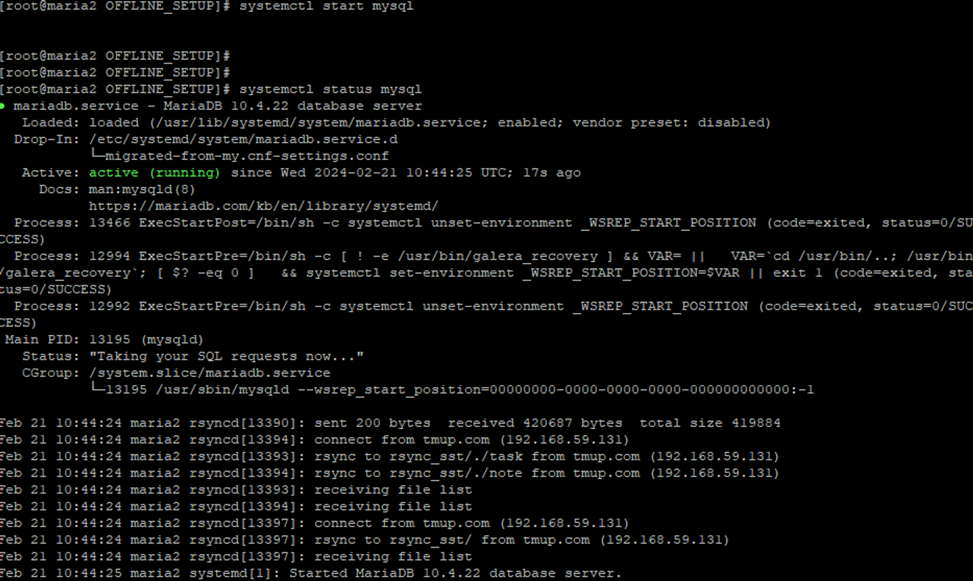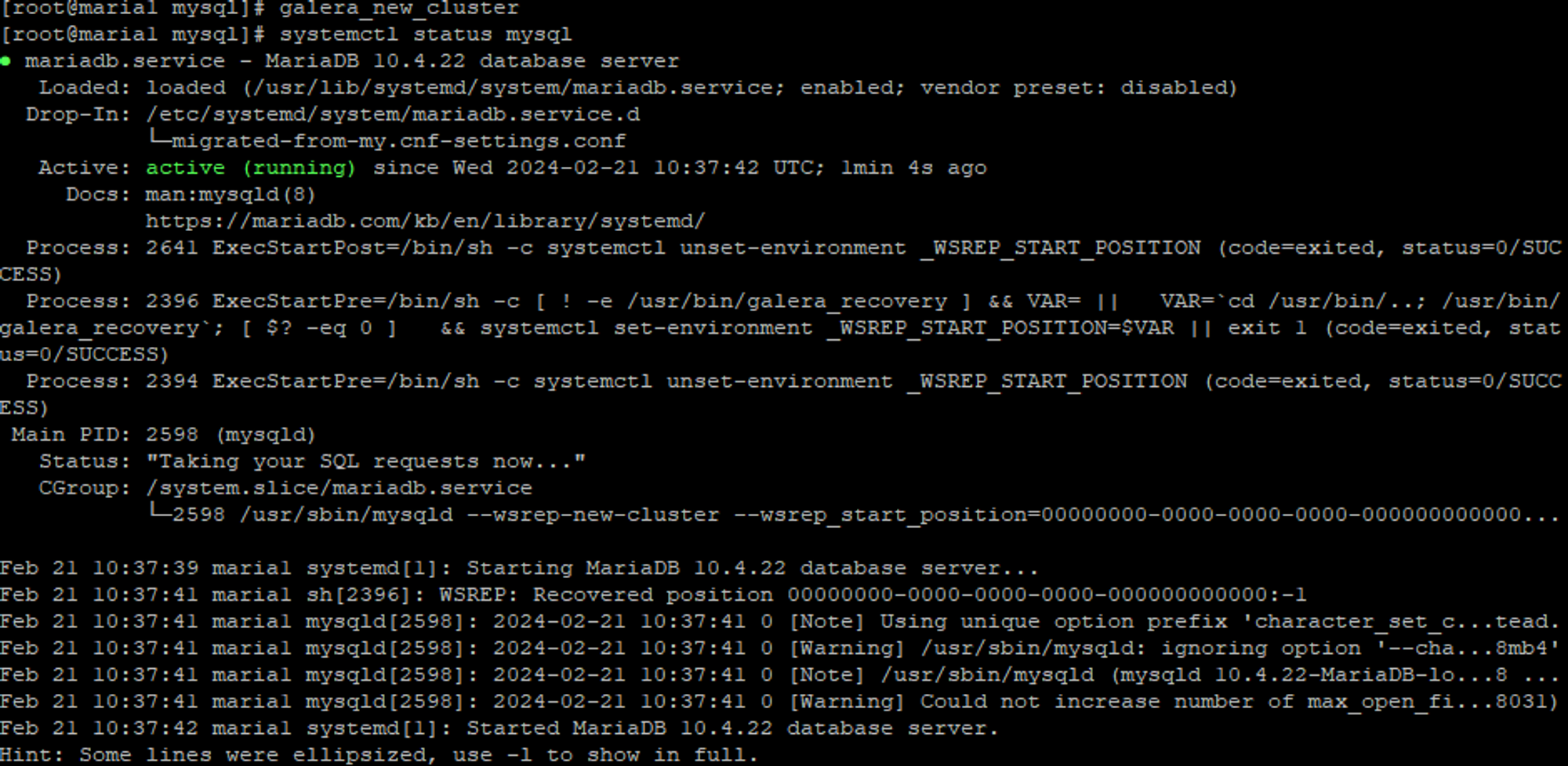 systemctl status mysql //1번 노드 상태 확인