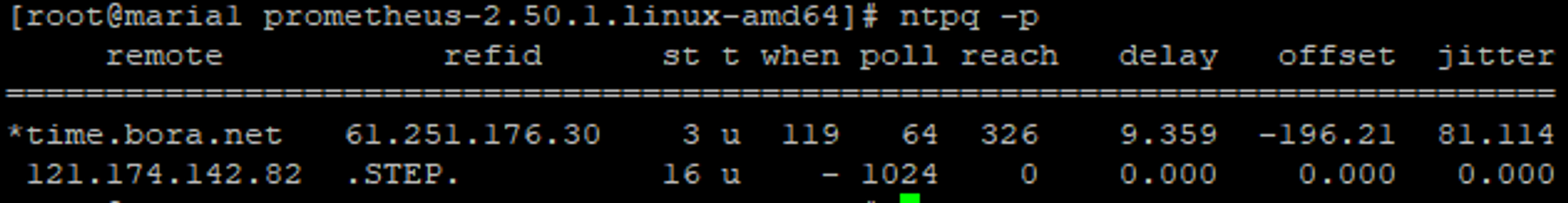 ntpq -p //현재 NTP 서버와의 연결 상태 및 동기화된 시간 정보를 표시