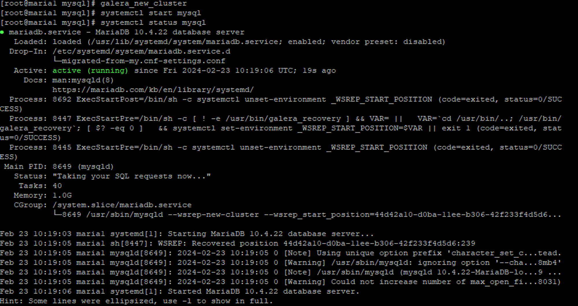 6. 1번 서버 galera_new_cluster 명령 입력